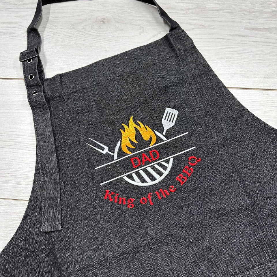 Personalised Embroidery for a Unique Touch Add a special touch with custom embroidery. Personalise the apron with a name, initials, or a fun message like "King of the BBQ" to create a bespoke accessory that stands out. This personalised detail not only adds a sense of ownership but also makes the apron a memorable and cherished gift.
