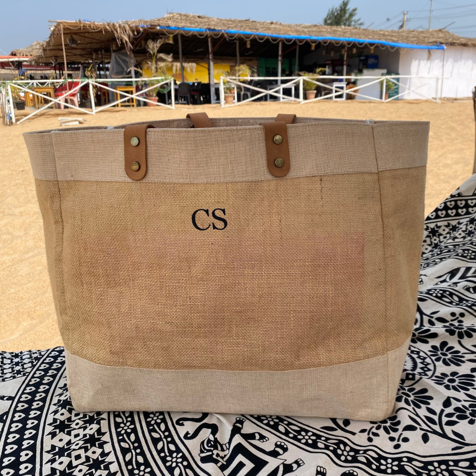 Eco-Friendly and Durable Design Crafted from premium jute, our personalised beach bag is both eco-friendly and durable. The natural fibres of the jute material offer strength and resilience, ensuring the bag can handle daily use while maintaining its chic appearance. The sturdy leather handles provide a comfortable grip, adding a touch of elegance to the overall design.