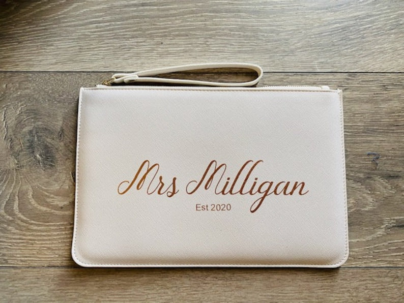 It’s perfect not only for the wedding day but also for pre-wedding events such as the Bridal Shower, Bachelorette Party, or rehearsal dinner. The personalised design makes each clutch a meaningful and special gift, allowing your bridesmaids and maid of honour to feel appreciated and celebrated throughout the wedding journey.