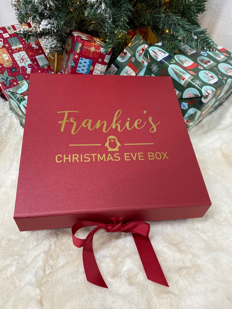 Make Christmas Eve extra magical with our Personalised Christmas Eve Box. This beautifully designed Red Christmas Gift Box, complete with a luxurious ribbon, is perfect for building family traditions or creating special moments with loved ones. Whether filled with holiday treats, cosy pyjamas, small gifts, or festive surprises, this Christmas Eve Box is sure to add joy and excitement to the night before Christmas.