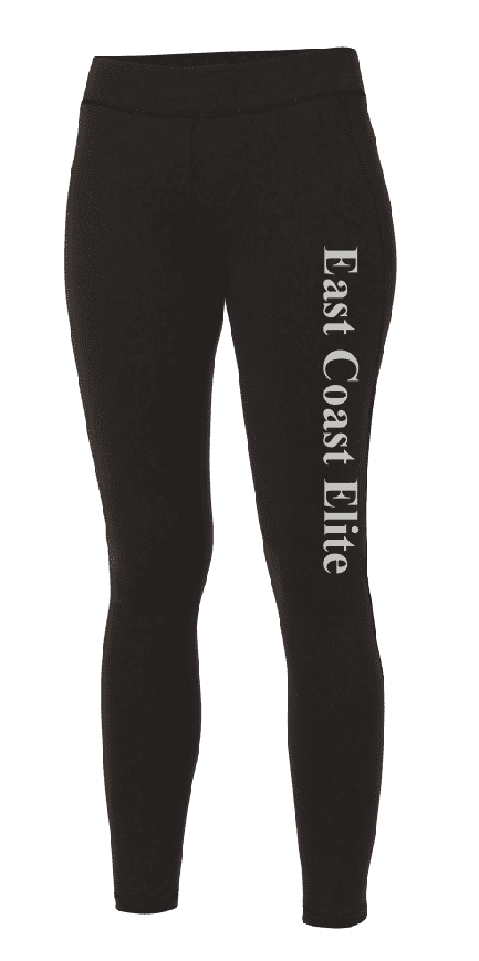 These leggings come with East Coast Elite printed down the left leg.