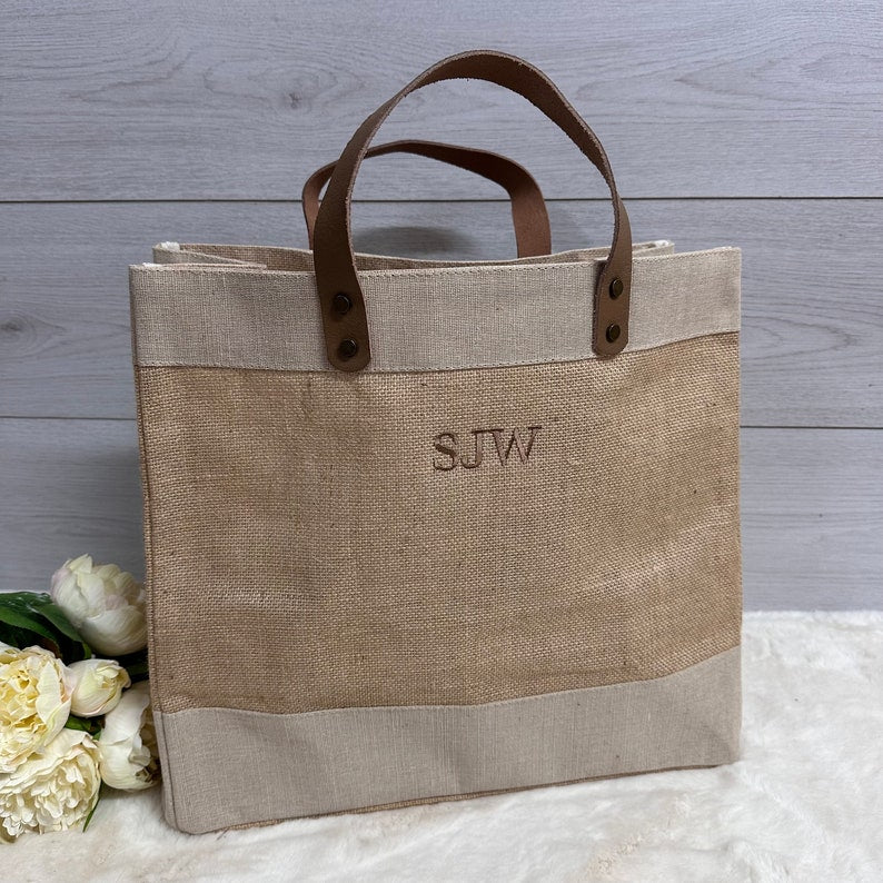 Available in natural tones that complement any outfit, this Personalised Jute Bag combines eco-conscious materials with luxury finishes. The comfortable leather handles ensure easy carrying, while the timeless design makes it a wardrobe staple.