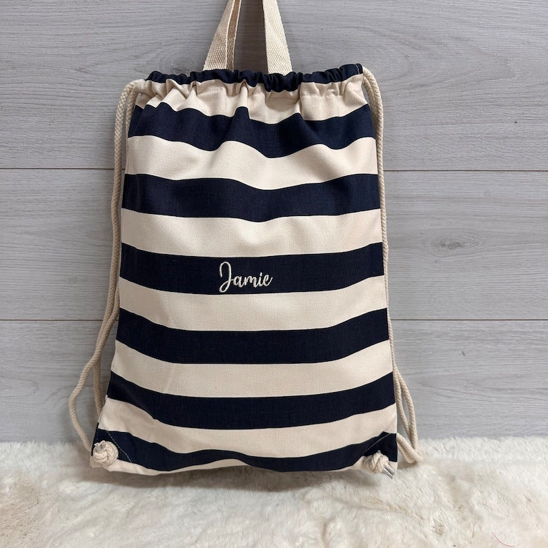 Introducing our personalised nautical drawstring bag, a versatile and stylish accessory perfect for a variety of uses. Whether you need a swimming bag, rucksack, gym bag, nursery bag, gym sac, or beach bag, this all-in-one drawstring bag is designed to meet your needs with flair.