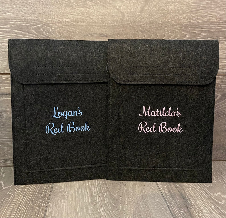 Keep your baby's health records safe and organized with our Personalised Baby Health Red Book Folder. This beautifully crafted, customised felt sleeve is designed to protect and enhance the traditional NHS Red Book, providing a unique touch for new parents. Each folder is made from soft, durable felt to ensure it withstands daily handling, and the lightweight design makes it easy to carry or fit in your baby bag.