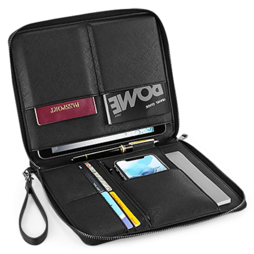 Our Travel Organiser is designed to hold all your important documents securely in one place, including passports, boarding passes, cards, and more. With designated slots and compartments, you can easily access your essentials while on the move, keeping you organised and stress-free during your travels.