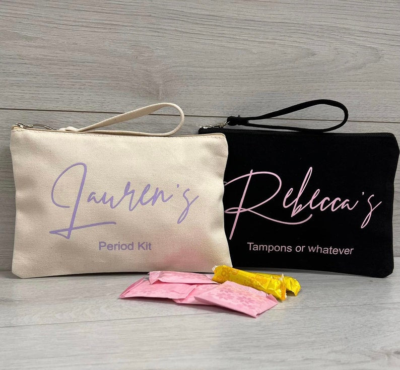 Ideal for school, work, or on-the-go, this sanitary pouch combines function with fashion, featuring a secure zipper closure and wrist strap for easy carrying. Whether you’re looking for a personal period pouch or a gift for a friend, this bag is a great way to stay prepared and feel confident no matter where you are. Perfect for managing your period with style, the personalised tampon and sanitary pad bag is a must-have accessory for every woman’s self-care routine. Available in a range of designs and colours, it’s the ultimate blend of convenience and style.