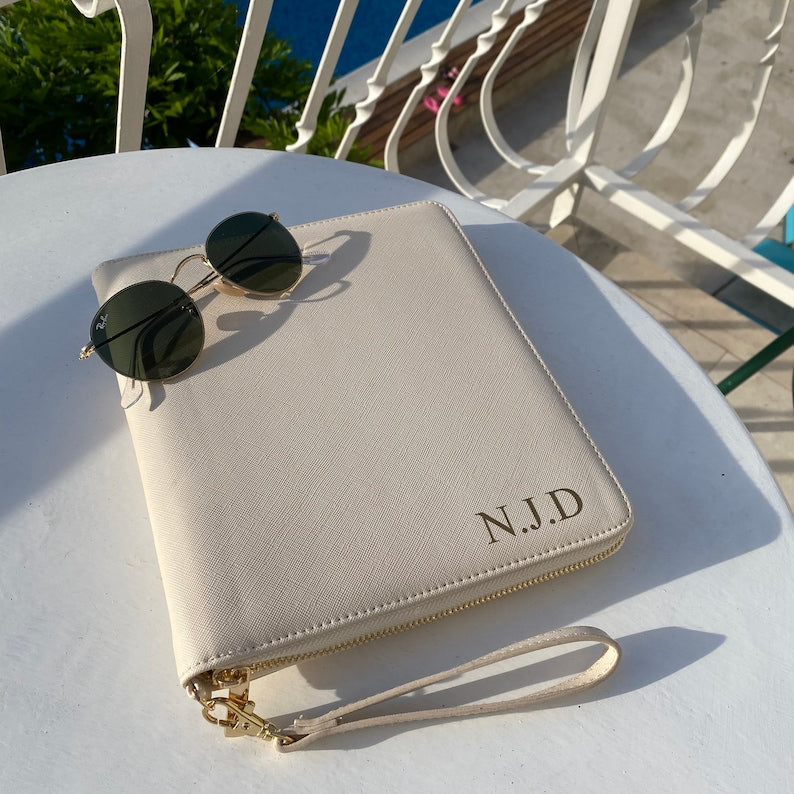 Travel with confidence and style with our personalised travel organiser. Designed to keep all your important documents and essentials in one place, this elegant travel document holder ensures that everything you need is easily accessible and organised. Perfect for frequent travellers or as a thoughtful gift, this monogrammed passport holder combines functionality with a personal touch.