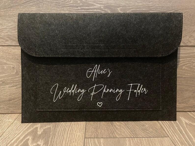The Personalised Wedding Planning Folder is the perfect tool for any bride-to-be, helping her stay organised throughout the exciting journey of wedding planning. This elegant and practical Bride to be Organiser is designed to ensure that no detail is overlooked, providing a dedicated space to manage every aspect of the big day.