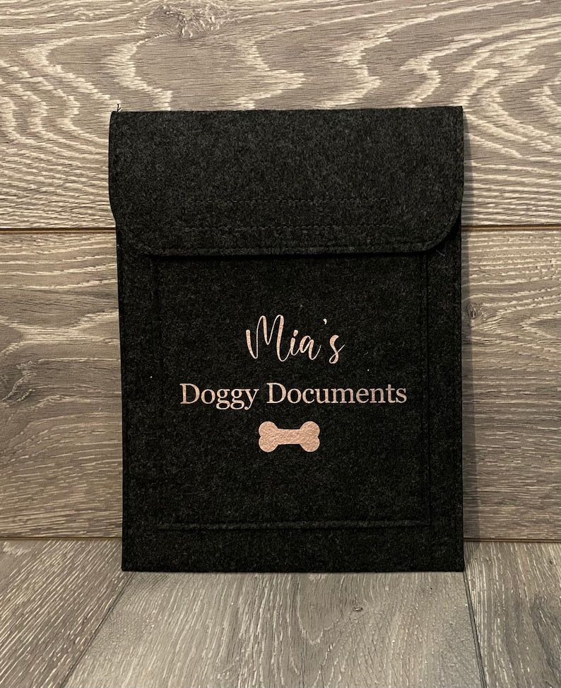 Its compact size fits easily into a bag or drawer, so you can take it wherever you go, ensuring you always have your pet’s important information on hand. The thoughtful, minimalist design complements any style and is available in a variety of colours, making it a beautiful and functional gift for new pet owners or seasoned animal lovers alike. With this Custom Made Felt Folder, you can keep your pet’s history secure and organized, giving you peace of mind while celebrating your special bond with your furry companion.