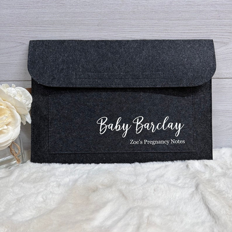 Keep your pregnancy documents safe and organized with our Personalised Pregnancy Notes Folder. This thoughtfully designed felt folder is perfect for protecting your important maternity records, ensuring they stay in pristine condition throughout your journey to motherhood. Whether you're storing ultrasound images, doctor’s notes, or your pregnancy care plan, this folder keeps everything neatly in one place.