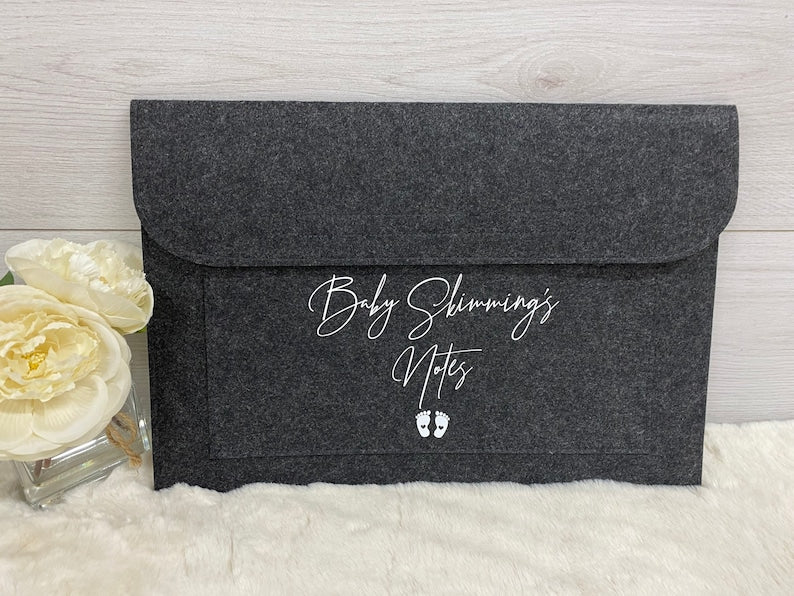 Keep your pregnancy documents safe and organized with our Personalised Pregnancy Notes Folder. This thoughtfully designed felt folder is perfect for protecting your important maternity records, ensuring they stay in pristine condition throughout your journey to motherhood. Whether you're storing ultrasound images, doctor’s notes, or your pregnancy care plan, this folder keeps everything neatly in one place.