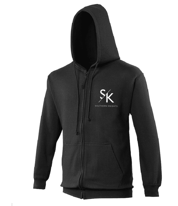 This Southern Knights zipped hoodie will have the logo embroidered on the front and back.