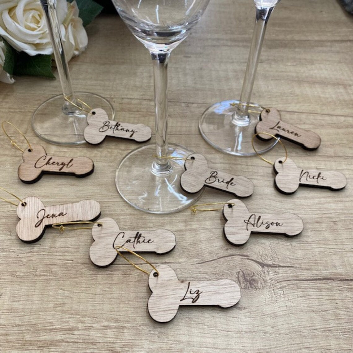 Add a fun and memorable touch to your hen party with our Personalised Hen Party Glass Charms! Perfect for celebrating the bride-to-be, these charming little accessories will ensure that each guest feels included while bringing a playful vibe to your festivities. Each charm features a delightful willy design that adds a cheeky twist to your party atmosphere, making it a hit among your friends.