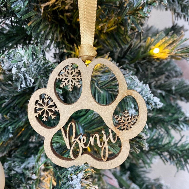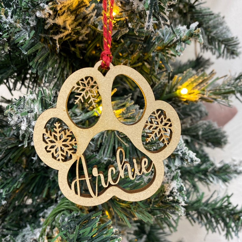 What sets this decoration apart is the option to personalise it with your pet's name or a special message, adding a heartfelt touch that will warm your heart every holiday season. Measuring just the right size to hang on your tree or adorn your mantelpiece, this paw bauble is versatile enough to complement any festive display.