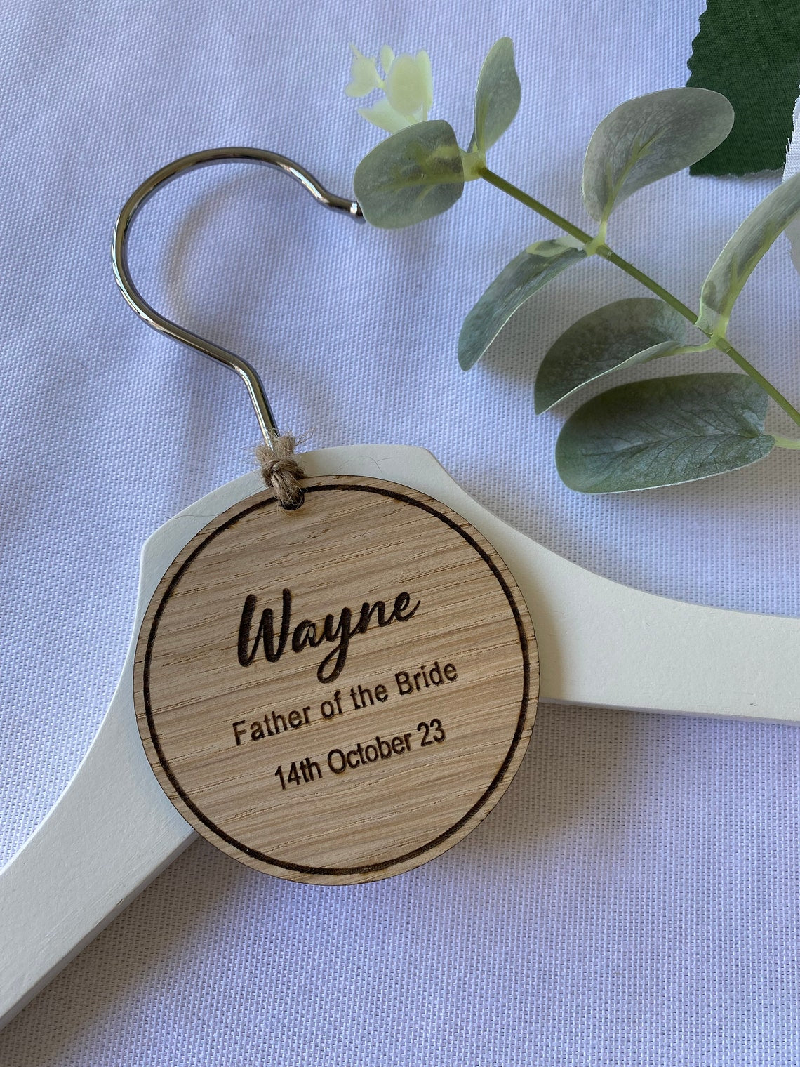 Celebrate the special moments of your wedding day with our Personalised Wedding Hanger Tag, a unique and meaningful addition to your bridal and groom preparations. This exquisite wooden tag is designed to elegantly adorn your wedding hanger, making it a beautiful keepsake that captures the essence of your big day.