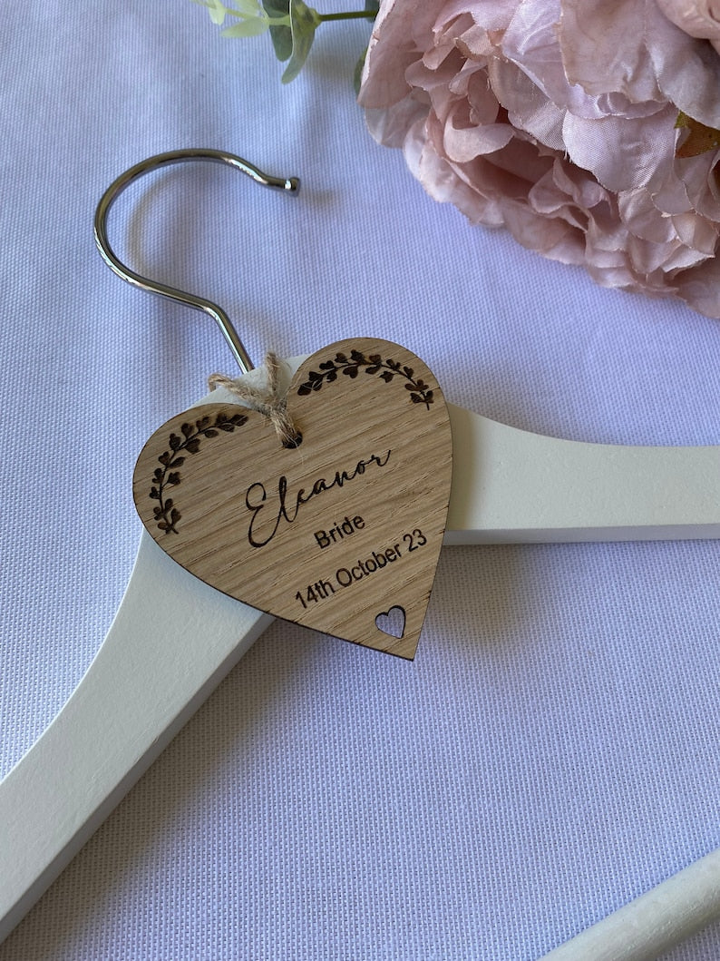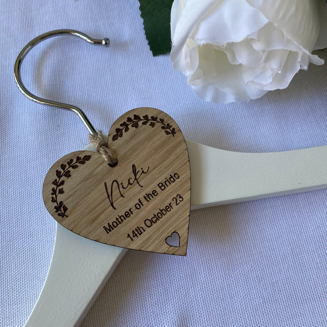 Each tag can be customised with names, titles, or special dates, ensuring that it reflects your unique love story. Whether it’s for the bride’s wedding gown, the bridesmaids' dresses, or even the mother of the bride, this versatile hanger charm adds a thoughtful touch to your bridal preparations.